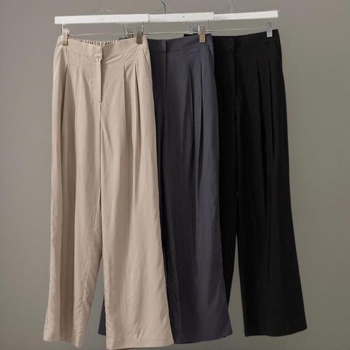 |KSP8C3F|여성 여름 사무실 패션 투핀턱 스트레이트핏 비스코스 슬랙스