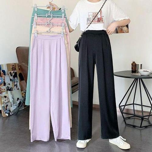 여성 패션 정장 바지 레이디 통기성 헐렁한 높은 허리 넓은 다리 여름 바지 레이디 스트레이트 다리 블랙 커피 클래식 바지