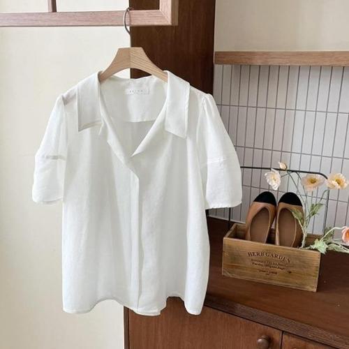 화이트 돌 칼라 셔츠 여성 여름 디자인 허리 조임 슬림 핏 반팔 이너웨어 탑 신상 스위트 스타일