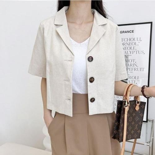 [엄지척]여성 여름아우터 린넨 버튼 크롭 반팔 자켓_20362441_667501