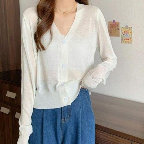 [끌레아]여성 3컬러 베이직 여름 바캉스 브이넥 긴팔 가디건 브이넥 가디건 여름 아우터 긴팔 바캉스