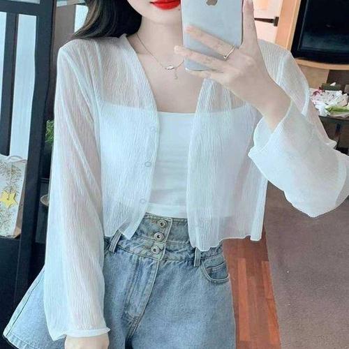 [에이치플러스몰]가디건 여름용 시스루 크롭 햇빛차단 얇은 아우터 3색