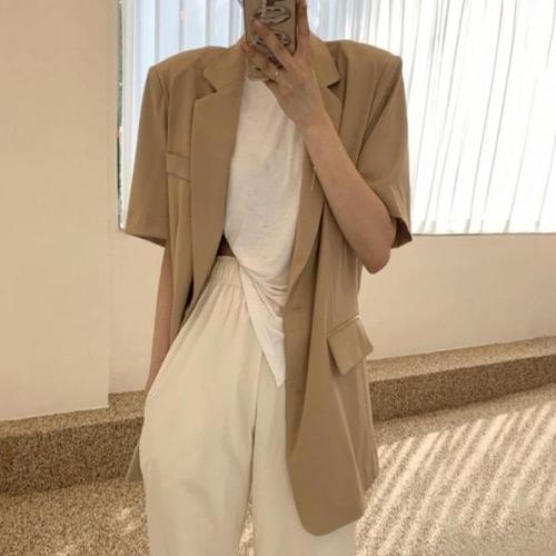 [엄지척]여성 루즈핏 롱자켓 반팔자켓 여름아우터 블랙 베이지_20342777_667501