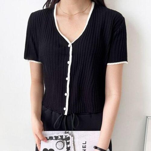 [끌레아]여성 여자 반팔 가디건 여름 골지 단추 포인트 패턴 패션 상의 아우터 데일리 러블리 베이직