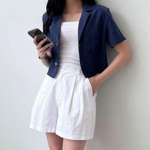 [끌레아]여자 여성 재킷 아우터 반팔 크롭 여름 오피스룩 면 자켓 크롭자켓 면마
