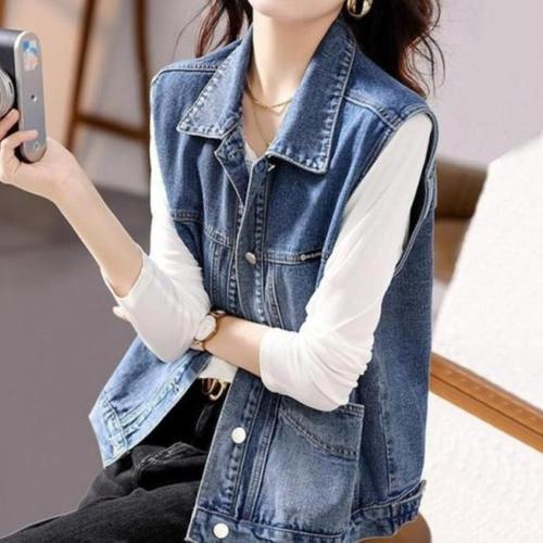 [다잇템]여자 환절기 조끼 패션 진 카라 봄여름 조끼 (15140540A)