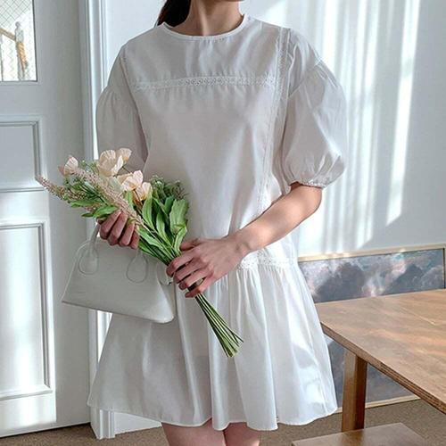 [셀럽하우스]퍼프 RVLX2013 화이트 슬리브 소매 미니원피스 여름 드롭