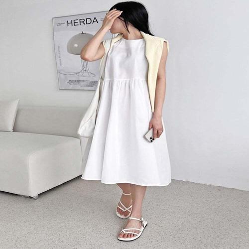 [셀럽하우스]여성 TCKX7926 퓨어 화이트 봄여름 플레어스커트 나시 롱원피스