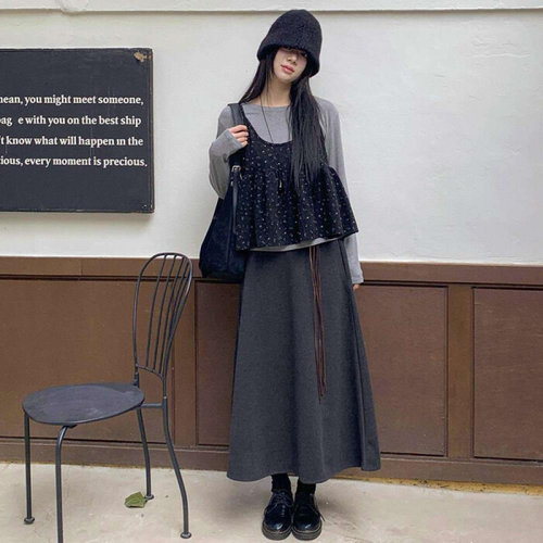 [신상오픈런]여성 A라인 롱 스커트 가죽벨트 세트 플레어 디자인