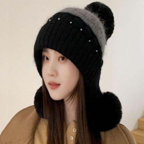 여성 겨울 양쪽 방울 비니 귀달이 방한 털모자 WFFZJSN