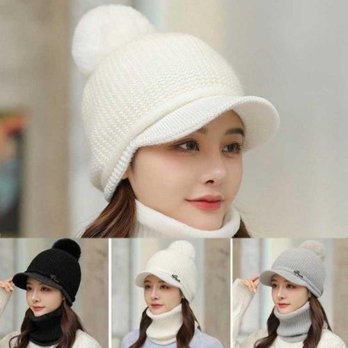 [라라데이빗] 여성 겨울 니트 방울 모자 귀달이 챙모자 따뜻한 방한모 캡모자 골프 볼캡 귀마개