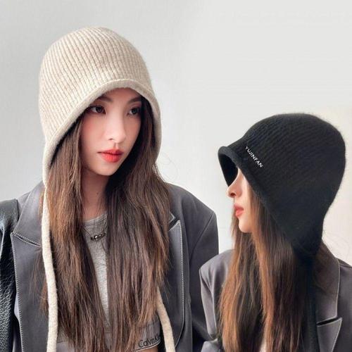 니트 후드 캡 겨울 발라클라바 모자 여성용 야외 방한 끈 조절 모자 일체형 넥 칼라 비니 캡