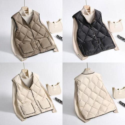여성 배색라인 경량 패딩조끼 따뜻한 실내 사무실 조끼 방한 겨울 퀼팅 컬러 카라 둥근 데일리 레이어드 베