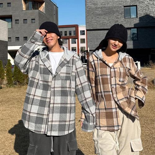 여자 콘트라스트 후디 기모체크남방 셔츠