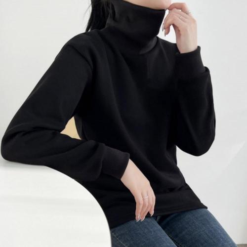 여성 부드러운 면 기모 목폴라 베이직 폴라 긴팔 티셔츠 WFLYAVM