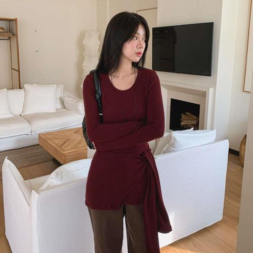 [다잇템]여성 랩 골지 쁘띠 슬림핏 스웨터 원피스