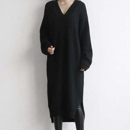[오너클랜]인기상품 여성용 긴팔 니트 원피스 하객룩 브이넥 롱 드레스 [WFLLQ17_260305]