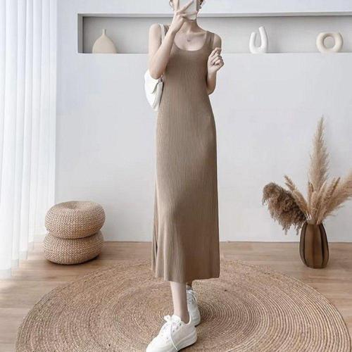 [오너클랜]인기상품 여름용 슬림 골지 니트 롱 드레스 [WFLLSMX_260305]