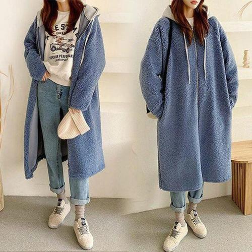 여성 기모 후드집업 여성용 후드 롱 드레스 가을 겨울 양털 두꺼운 오버사이즈 캐주얼 지퍼 JXH