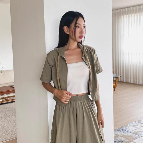 여성용 후드집업과 면혼방 카고롱스커트 세트