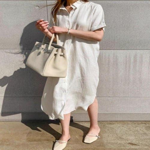 린넨 반팔 롱 셔츠 원피스 HH-B107