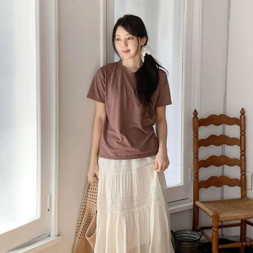 |KHT95BA|여성 단색 린넨 부드러운 핏 라운드넥 티셔츠
