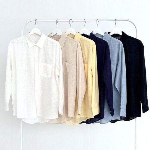 [셀러허브_여성트랜드패션]ONM 코튼 린넨 오버핏 셔츠 여성 베이직 기본 긴팔