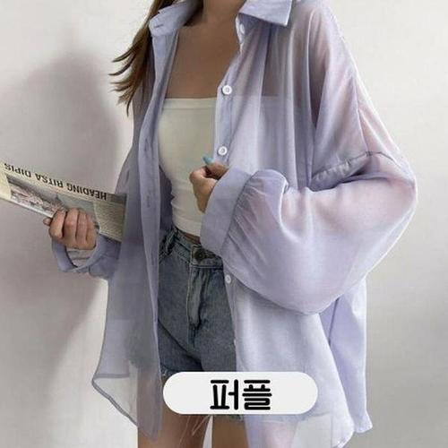 [셀러허브_여성트랜드패션]ONM 베리노블 여성 린넨 긴팔 퍼플색 셔츠 시스루 루