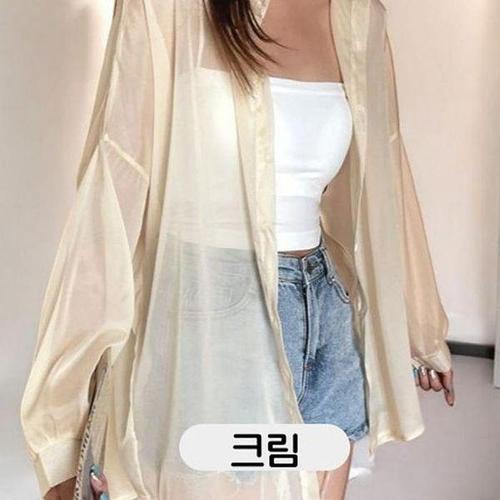 [셀러허브_여성트랜드패션]ONM 베리노블 여성 린넨 긴팔 크림색 셔츠 시스루 루