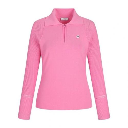 [핑]여성 메쉬 소매 카라 반집업 긴팔 니트121F1SR251_PK_YS
