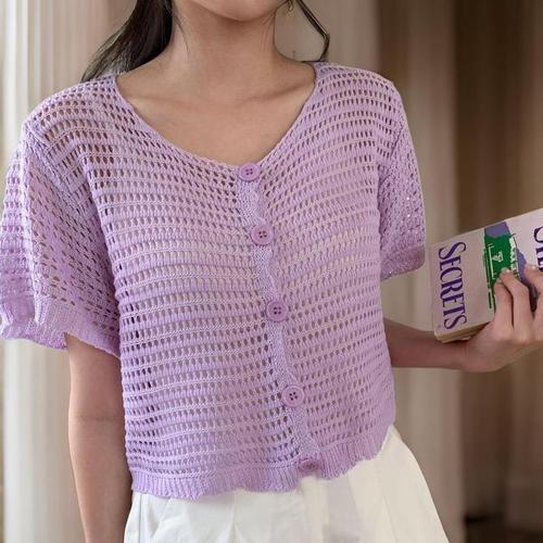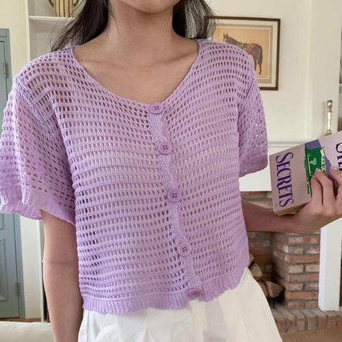 아이엠몽 여성 펀칭 브이넥 니트 반팔 가디건