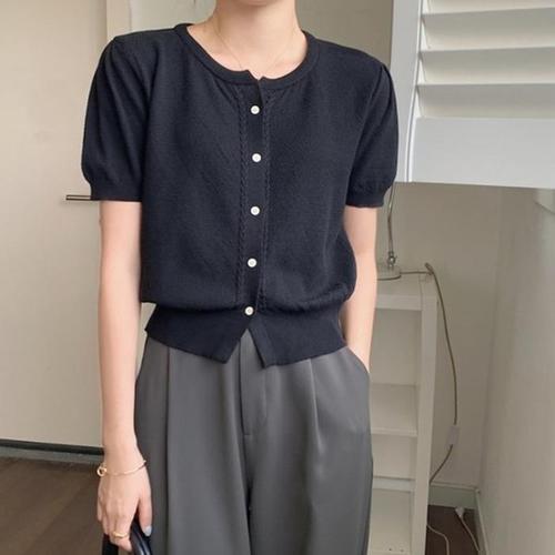 [다잇템]여성 미니멀리즘 버튼 스웨터 반소매 가디건 (41117364A)