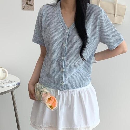 [다잇템]여자 반소매 스웨터 클래식 V넥 버튼 가디건 (41030665A)