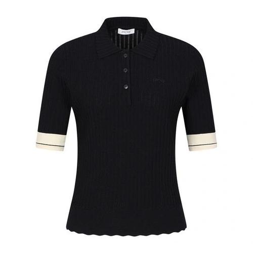 [팬텀]봄 여성 니트 카라 5부 반팔티셔츠 / 221E1TO153_BK_IC_IC