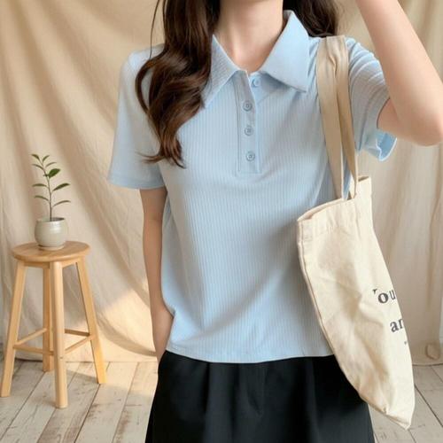 [옷자락]여성 데일리 오피스 캐주얼 카라 반팔 니트