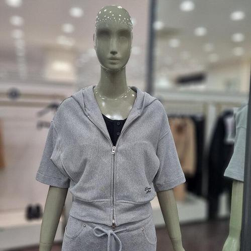 [시슬리]져지 후드 반팔 집업 점퍼 (SAJP02441 멜란지그레이)_DJ