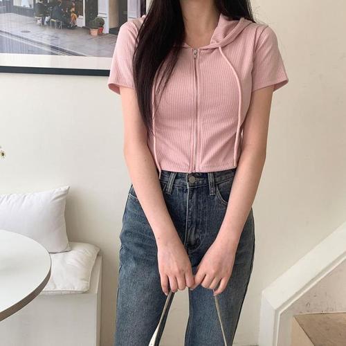 [다잇템]여자 클래식 후디 SS 반소매 골지 집업 (14863724)
