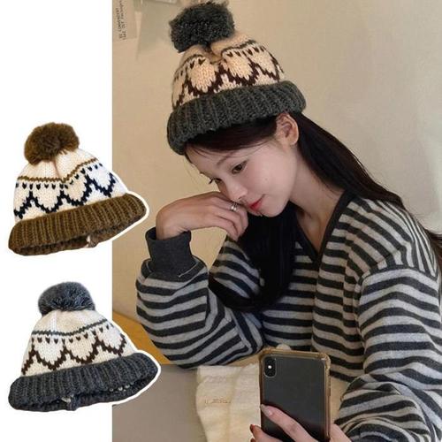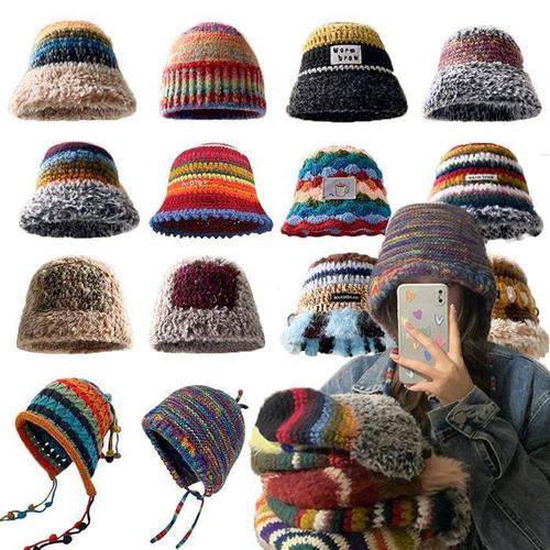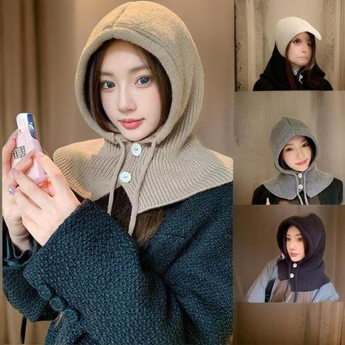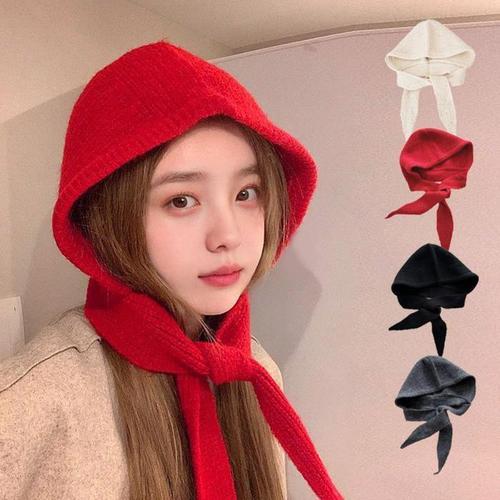 [다잇템]여자 귀여운 보온 위빙 스웨터 멀티컬러 모자 (42183930A)