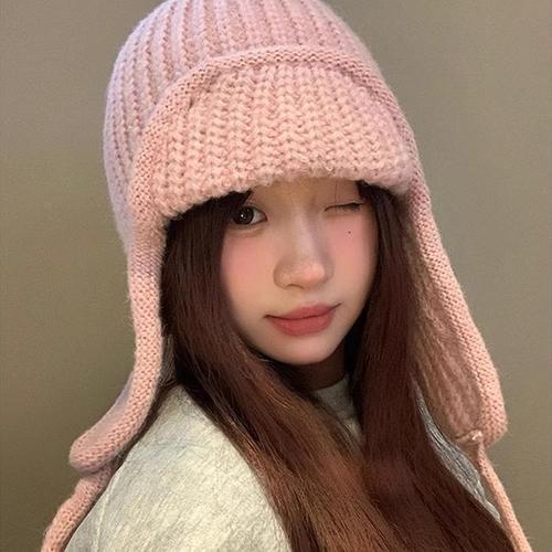 [다잇템]여자 귀여운 꽈배기 스웨터 귀덮개 뜨개 모자 (42216831A)