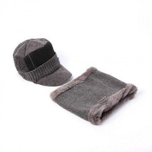 [에이치플러스몰]비니 방한 니트 스타일 챙모자 세트(그레이) 털모자