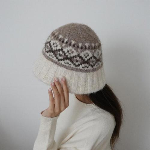 [다잇템]여자 노르딕 스웨터 패턴 울버킷햇 골지 모자 (42217943A)