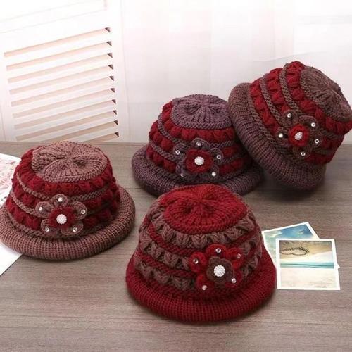 [다잇템]여자 장식 큐빅 꽃무늬 니트짜임 실버세대 모자 (19765090A)
