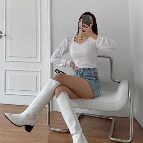 [다잇템]여자 봄티 슬림 셔링긴팔 하트네크 티셔츠 (12266321A)