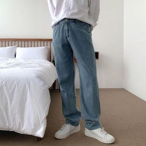 [셀러허브_여성트랜드패션]와이드 남자 팬츠 중청 남성 청바지 블랙 일자 데님 진청 생지