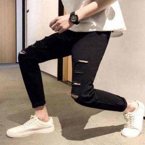 [하프클럽/]여성 블랙 스키니 진 컷팅 빈티지 반하이 스판 청바지
