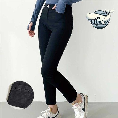 [에이치플러스몰]여자 겨울 기모 블랙진 날씬한 일자핏 데일리