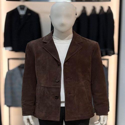 [바쏘옴므]브라운 천연 소가죽 3버튼 카라 레더 자켓