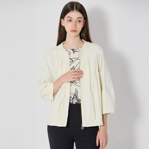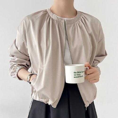 [다잇템]여자 봄 빈티지 미시룩 노카라 셔링 점퍼