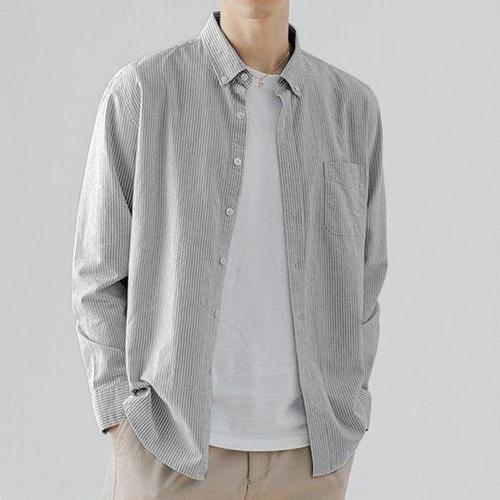 [셀러허브_여성트랜드패션]간절기 남성 캐주얼 구김적은 스트라이프 남방 셔츠