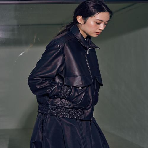 질스튜어트 뉴욕 여성 [EXCLUSIVE] 블랙 단색 램스킨 양가죽 블루종 점퍼 자켓 (JSJU5D778BK)